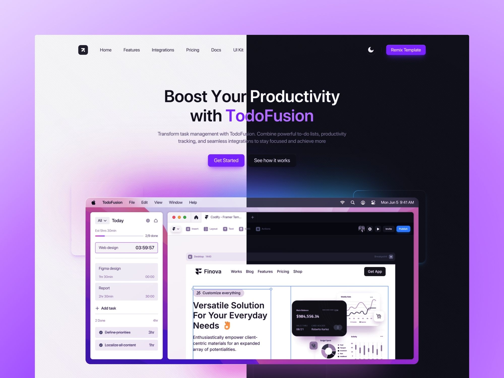 TodoFusion boosts productivity with seamless task management and real-time collaboration. This scalable, user-friendly Framer template offers comprehensive features for efficient workflow integration.